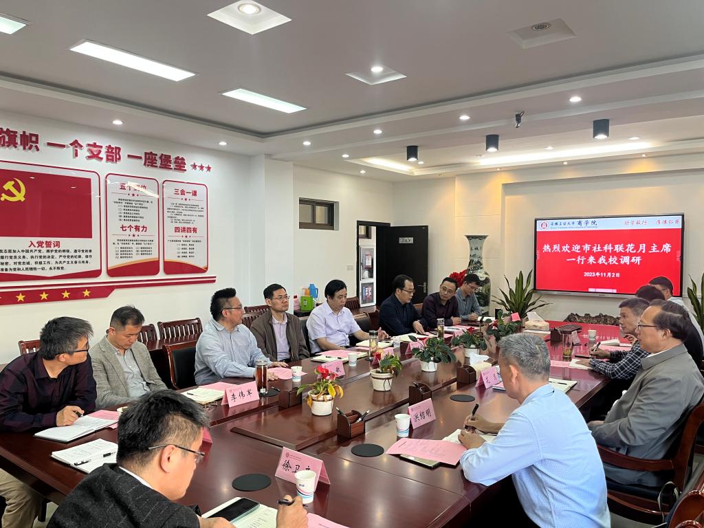 11月3日下午,市委宣传部副部长、市社科联主席花月,市社科联三级调研员张跃武,市经济学会会长洪绍明,市社科联办公室副主任王明银等一行来校调研智库建设工作。科研处、人力资源处、台湾av